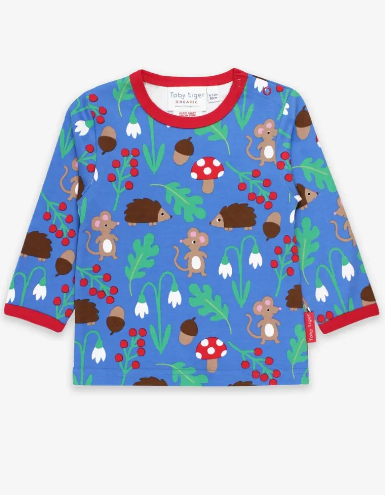 This long-sleeved kids organic T-shirt showcases all the magic the woodland has to offer. From our cheeky mouse to our friendly hedgehog foraging in the autumnal leaves, little ones will feel cosy and warm with long sleeves and made from 100% organic cotton. Love this style? Check out our full organic childrenswear Woodland collection online at Toby Tiger.