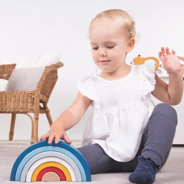 Stack, build and play with our versatile FSC® Certified Rainbow Stacking Toy. With no guidelines or rules of how to play with this stacking toy, it’s ideal for encouraging open-ended play.