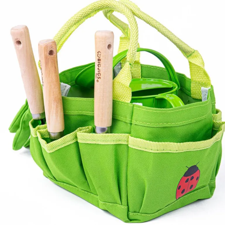 The Bigjigs Toys Small Tote Bag with Children’s Garden Tools has everything little gardeners need, including a watering can with a fixed spout, elasticated gardening gloves, a hand spade, trowel and rake. The tote bag even has a pretty red ladybird accent.