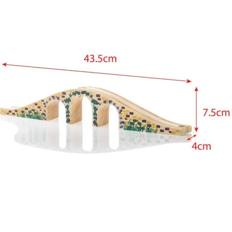 Who says straight paths have to be dull? Spice up your wooden train set with our Three Arch Bridge! Young train aficionados will have a blast watching their trains go over (or under) this stunningly designed bridge. Made with sustainable FSC® Certified wood and safe, child-friendly materials, this two-piece addition is compatible with most major wooden railway brands. Don’t miss out on the fun – get your Three Arch Bridge today!