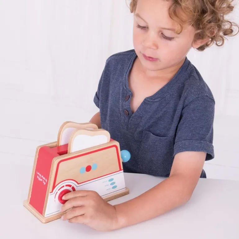 It’s time for toast with the Bigjigs Toys Wooden Toaster, a great addition to any play kitchen. Simply place the wooden bread slices in the slotted toaster, and then adjust the dial to the preferred setting.Whether your little one likes it lightly toasted or well done, there is a setting to suit everyone! Pop it up once it is ready and serve.The Bigjigs Toys Wooden Toaster toy is a great way to introduce even more fun to role-playing and inspire imaginative play sessions.