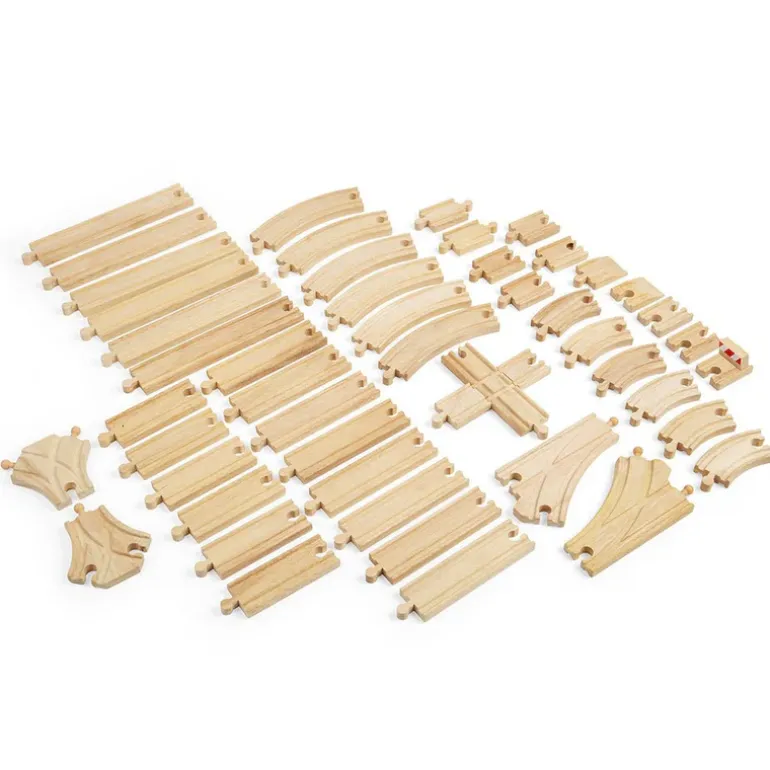 - 49 pieces of wooden train track in total