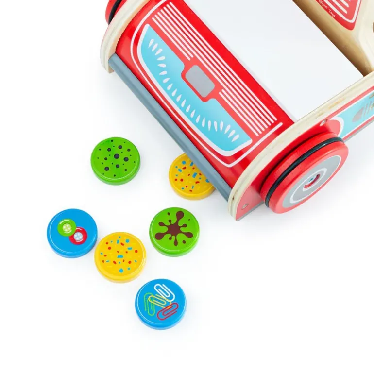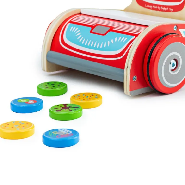 Our Upright Toy Vacuum Cleaner is just like Mum and Dad’s! The vacuum sweeps across the floor, picking up the colourful magnetic pieces along its way, just like a real-life hoover! The bright colours help make pretend cleaning fun and give kids a sense of responsibility.